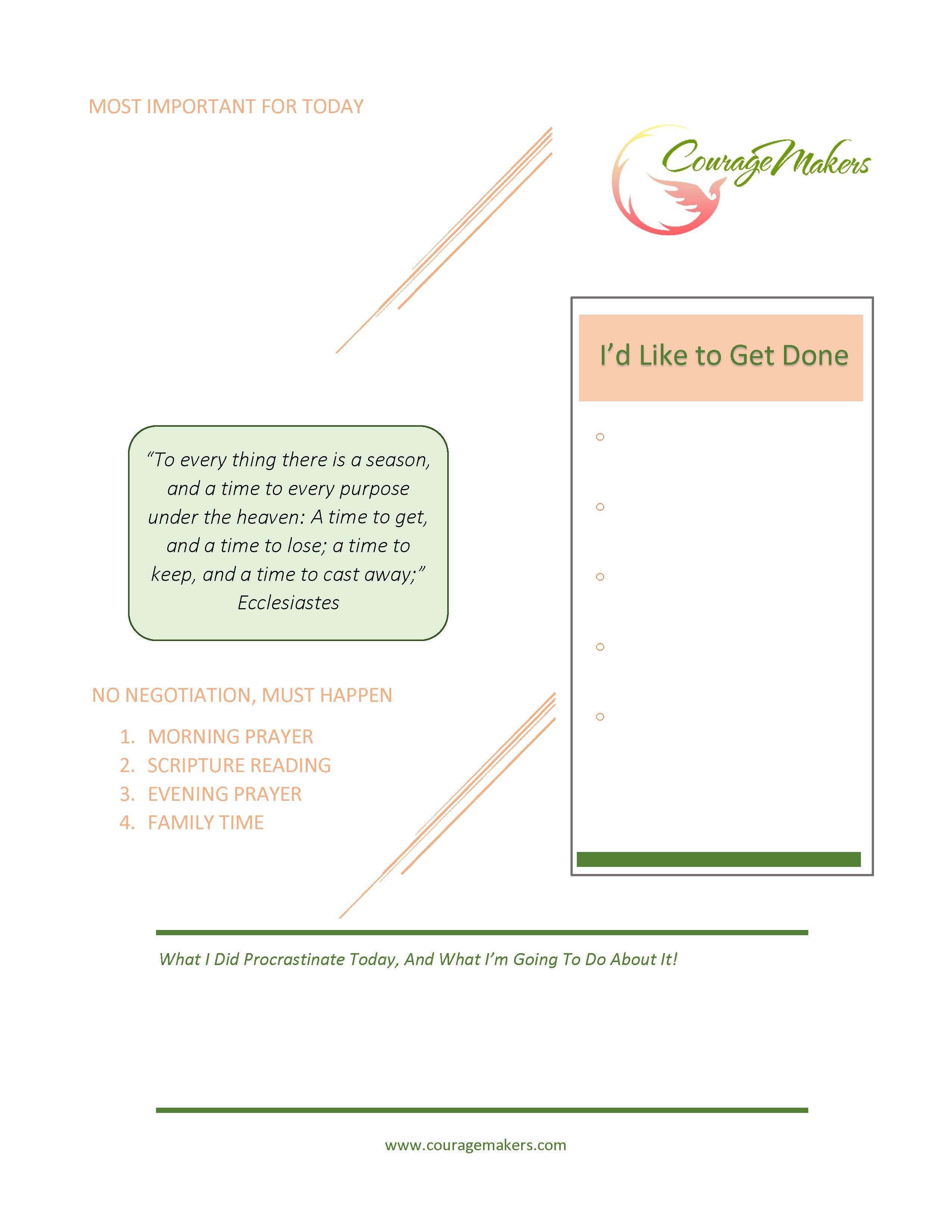 What ‘rules’ do you need in your daily, weekly, monthly life? Evaluate your day. Write down what you have done all day for a week and then look it over and see where your time goes. You may see you need to allow more time for something you enjoy doing; or that you avoid tasks you don’t like doing. You can copy the image below to use to start your day.